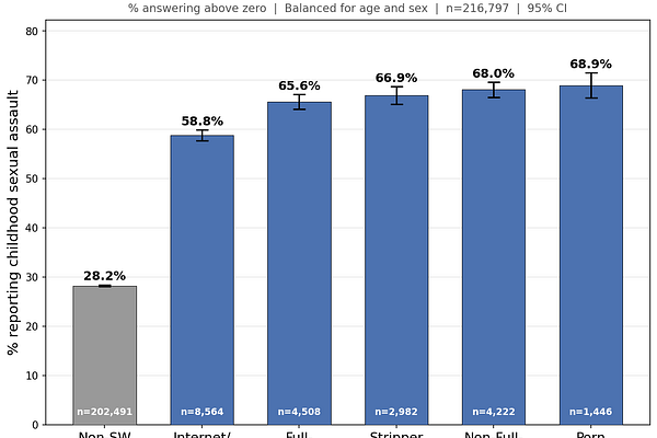 Comparing different sex work types and their contrast to non-sex-workers.