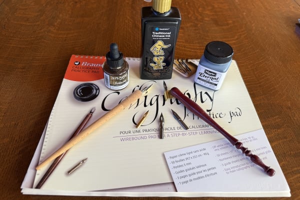 Picking up a longtime hobby, our publisher tries out some new calligraphy tools and techniques, only to find that mastering graceful script is…
