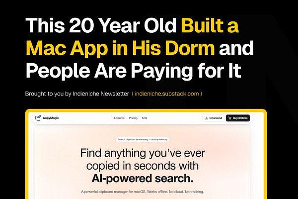 Indieniche is a newsletter featuring tips and stories from successful self-made founders. We share insights on building great products, growing your business, and showcasing essential tools to help you build and scale better.