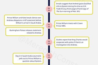 Plus, a handy timeline filled with Andrew news, Will's Saudi trip, Royal engagements, and more