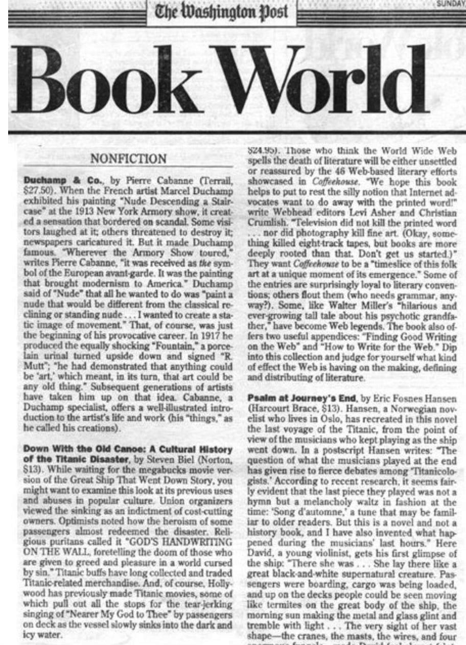 The shuttering of the Washington Post book review staff is wrenching, mainly for the individuals involved. It also seems to be the proverbial straw/camel, unleashing a thousand takes on the end of the traditional book review/legacy media reviewing ecosystem (by one count, there are four full time book reviewers left?). There are plenty of ways to analyze this: are newspapers the venue for book reviews anyway, dwindling readership, the cynicism and weaknesses of the era we are now eulogizing, etc.