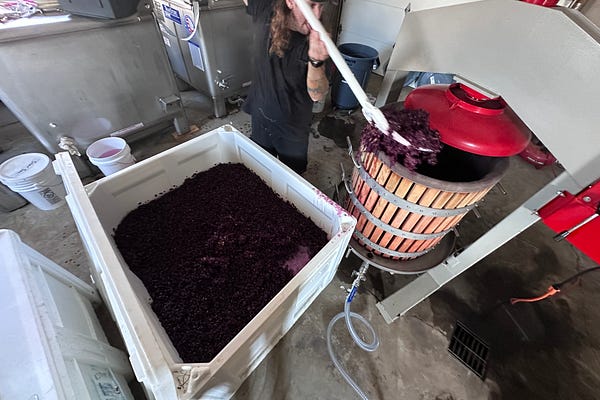 Speaking of climate resilience, Chris Denesha of plēb urban winery is pressing grapes this season.