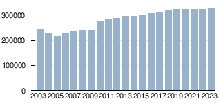 | Mitarbeiter (Vollzeit, TZ anteilig eingerechnet) | 276.310 | 285.319 | 287.508 | 295.653 | 295.763 | 297.202 | 306.368 | 310.935 | 318.528 | 323.944 | 322.768 | 323.716[28] | 324.136 | ||||||||