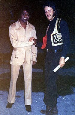 [Bearbeiten | Quelltext bearbeiten]Im Herbst 1974 trat er mit Miriam Makeba, B.B. King, The Spinners und The Crusaders auf einem Großkonzert in Kinshasa (Zaire, heute Demokratische Republik Kongo) auf, als Teil des Rahmenprogramms für den Boxkampf Rumble in the Jungle zwischen dem damaligen Schwergewichts-Weltmeister George Foreman und dem Ex-Weltmeister Muhammad Ali. Die gesamte Veranstaltung galt für das Selbstwertgefühl der Einheimischen insofern als bedeutsam, als bis zu jenem Zeitpunkt keine anderen Großereignisse wie Olympische Spiele oder eine Fußball-WM auf diesem Kontinent stattgefunden hatten.