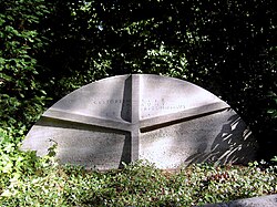 1950 hatte Beuys nach einem Entwurf von Ewald Mataré für die Grabstätte eine stehende Grabplatte, eine Schiefertafel in der Gestalt eines großen Vogels, für Ophey und seinen frühzeitig verstorbenen Sohn Ulrich Nikolaus ausgeführt.[38] Die heutige Grabplatte, die in ihrem Ursprungszustand im Jahr 1950 im unteren Teil noch ein Kreuz trug,[38] wurde bis 1978 um die Namen von Opheys Ehefrau Bernhardine Bornemann (1879–1968) sowie Georg und Luise Pehle ergänzt. Sie befindet sich, wie gleichfalls ein für den verstorbenen Karl Wiedehage, ehemaliger Chefarzt am Dominikus-Krankenhaus in Düsseldorf-Heerdt, geschaffenes Grabkreuz von 1970, auf dem Heerdter Friedhof.[39][40] Wiedehage hatte Beuys Anfang der 1960er Jahre eine Niere entfernen müssen, nachdem er in seinem Klever Atelier, das Beuys bis 1964 nutzte, beim Reinigen des Ofenrohrs gestürzt und mit dem Rücken auf den Rand des Kohleofens gefallen war.[41]